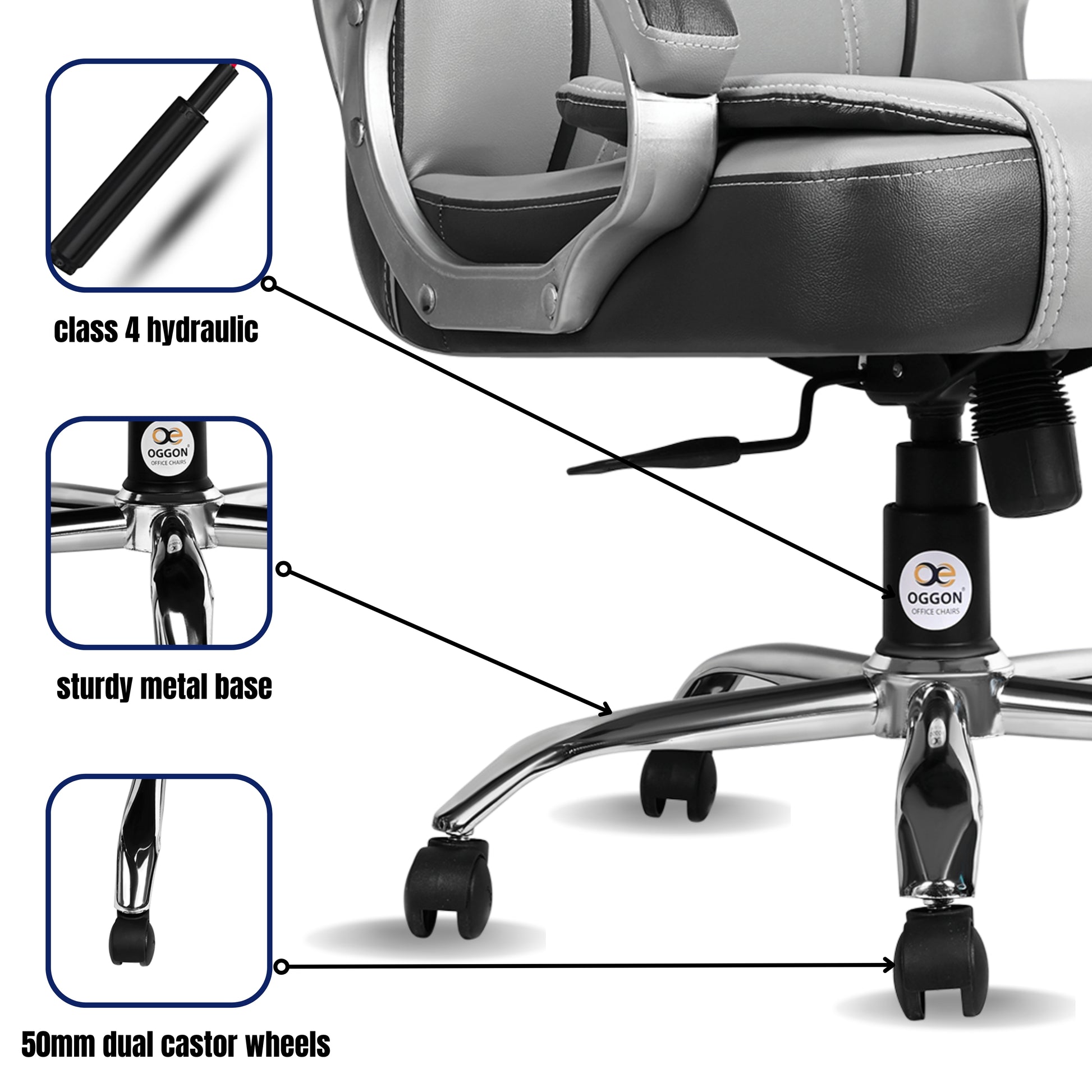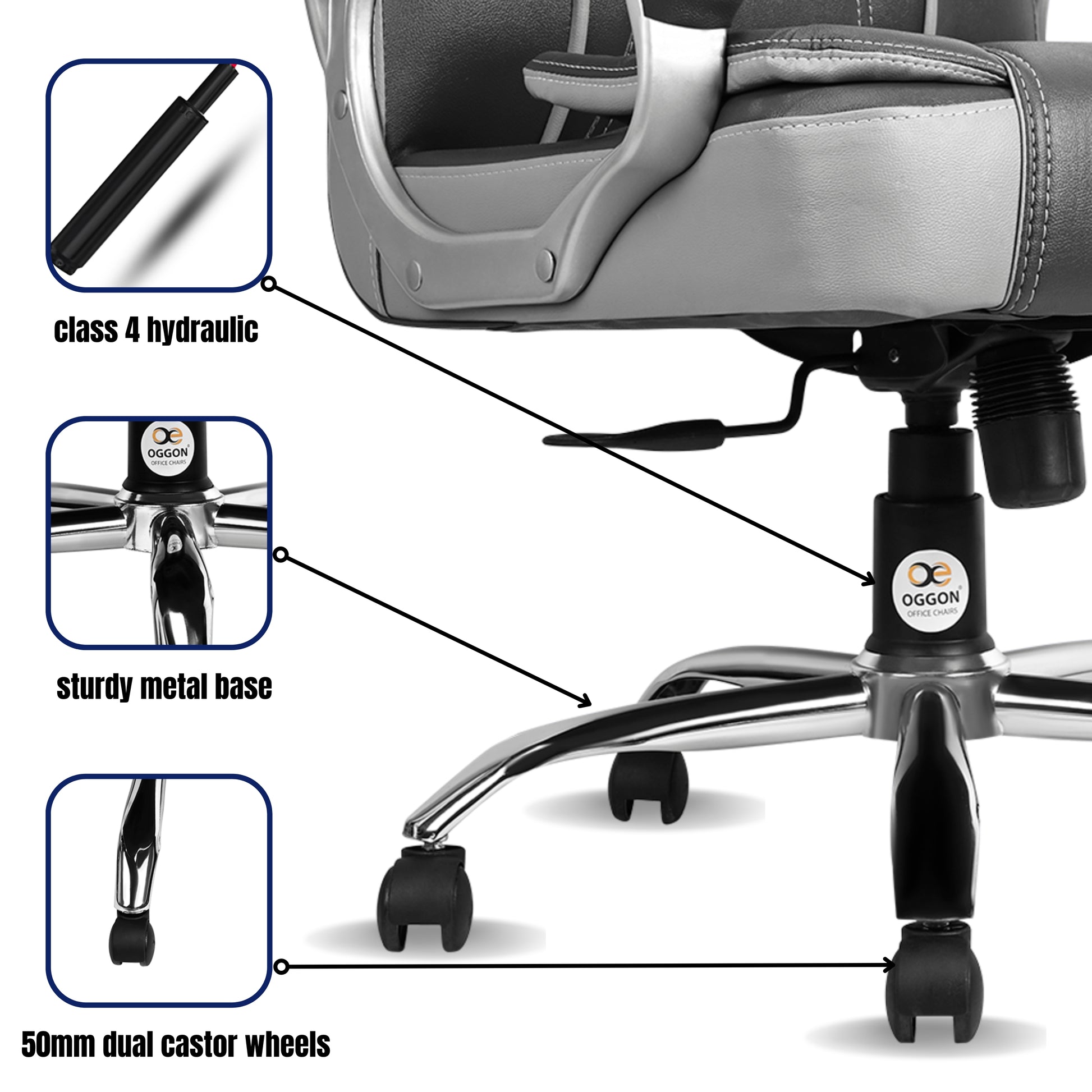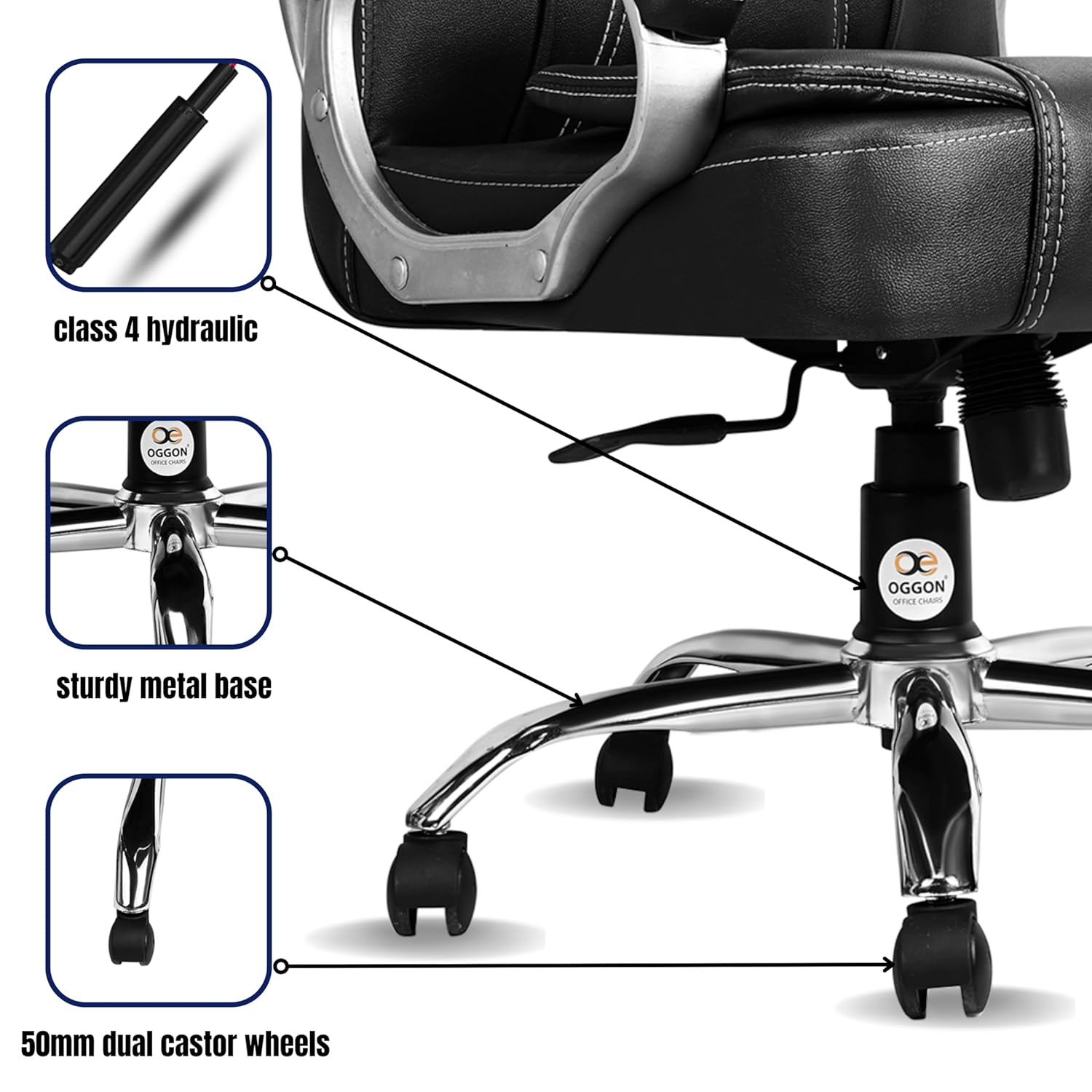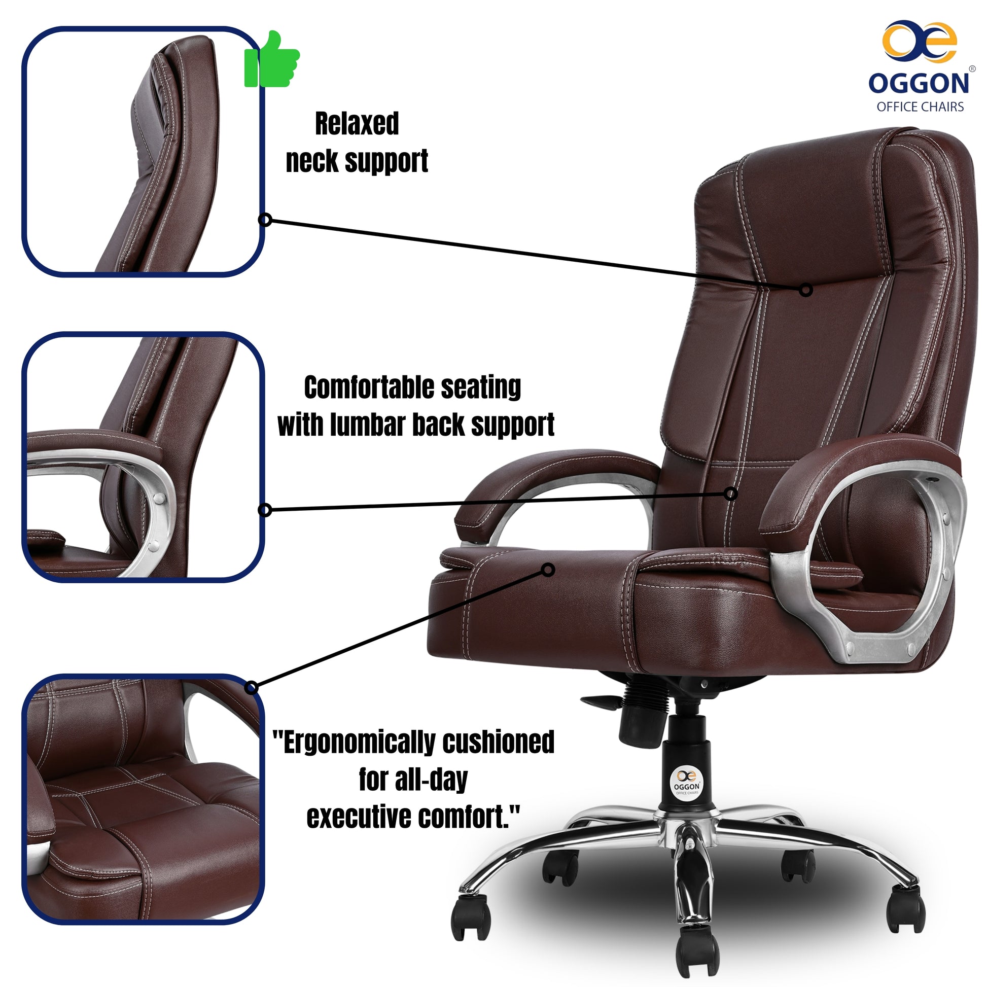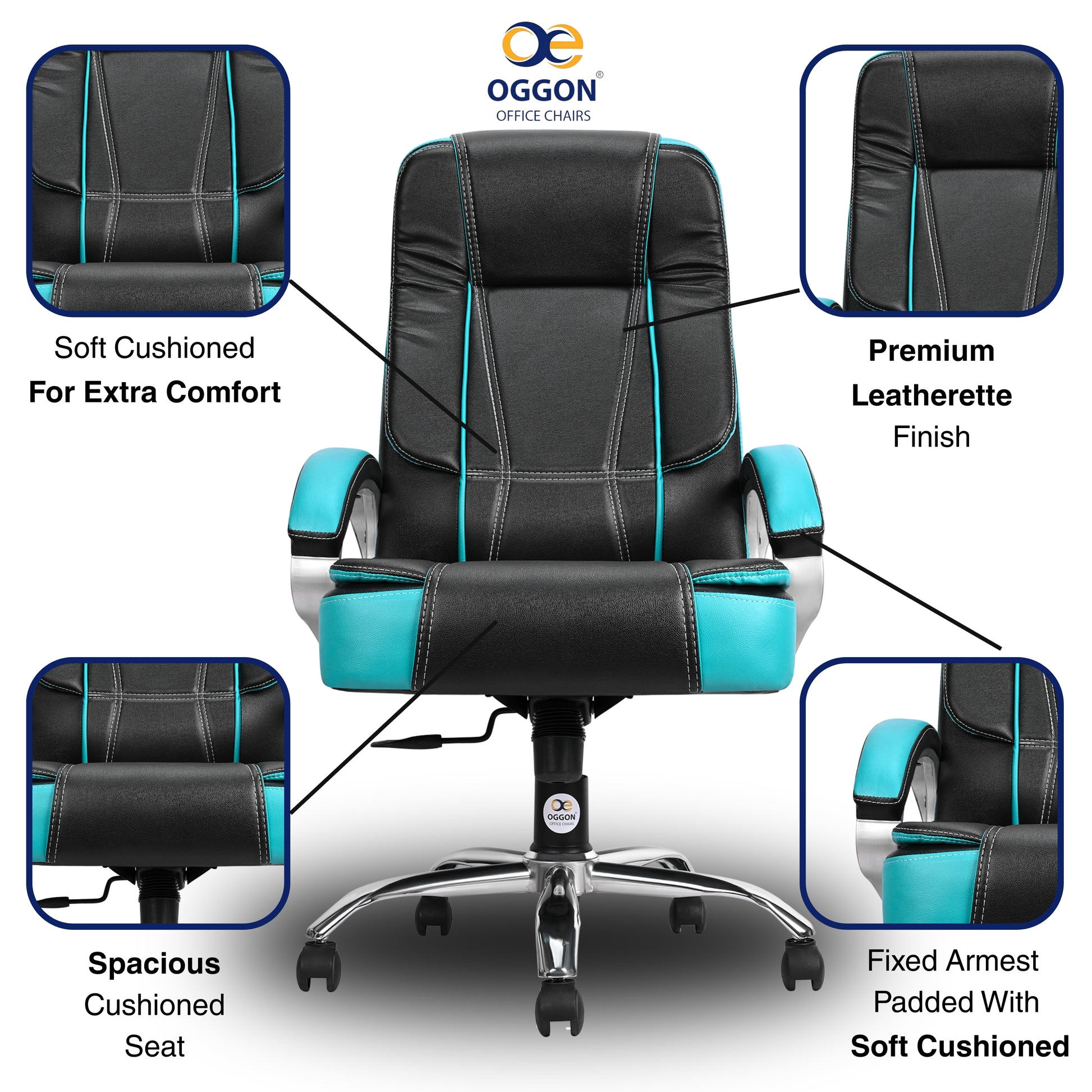 If you are searching for a high back executive leatherette office chair in India with lumbar support and durable build quality, the Oggon Charmer offers comfort, stability, and professional elegance.