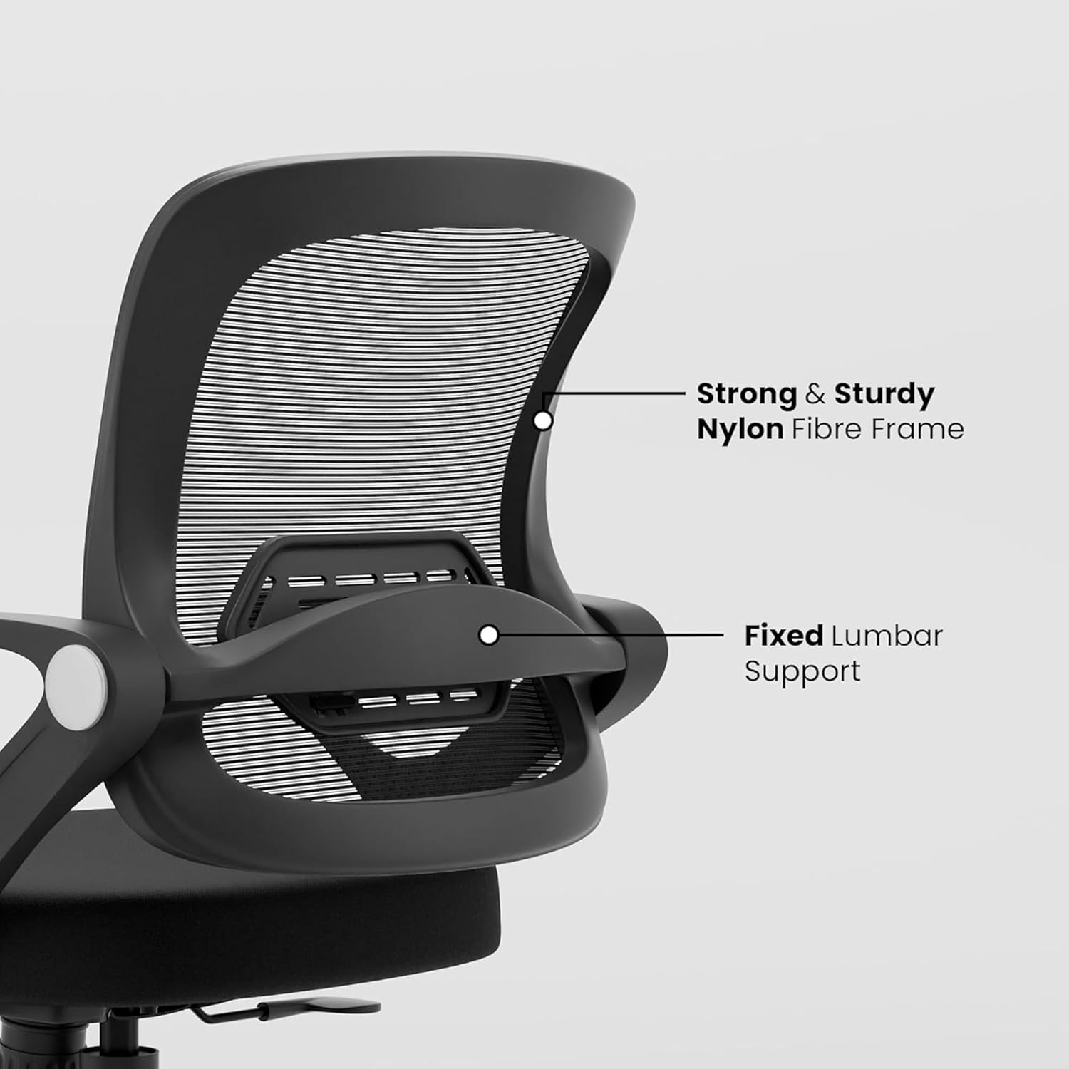 The premium mesh back allows continuous airflow, preventing heat buildup and keeping you cool during extended work sessions. Perfect for Indian climate conditions.